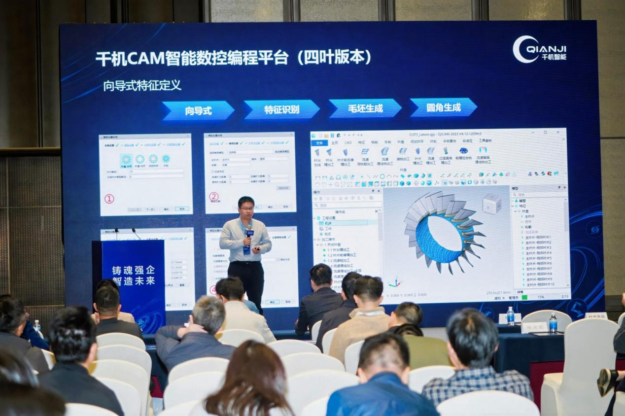 深圳千机软件有限公司总经理涂彬 带来《千机 CAM 软件平台助力智能制造场景落地》主题分享,聚焦千机智能自主研发的千机 CAM 智能数控编程平台,详细介绍其针对四叶类零件加工场景的定制化能力 —— 该平台可提供 “高效率、高精度编程-加工-测量-补偿”一体化闭环加工方案,从流程端打通制造全链路,有效解决复杂零件加工中的精度偏差、效率瓶颈问题,展现了国产工业软件在细分制造场景的深度适配实力。