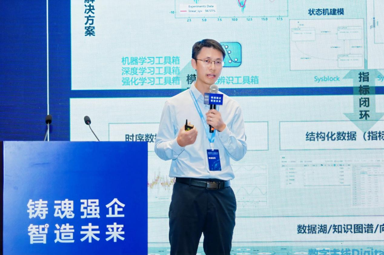 能科科技售前及产品应用中心总经理张栋 在《AI + 数字工程:为制造企业数智化研制注入新动力》报告中,系统介绍了能科 NIDM 解决方案、DM应用以及AI应用典型案例。
