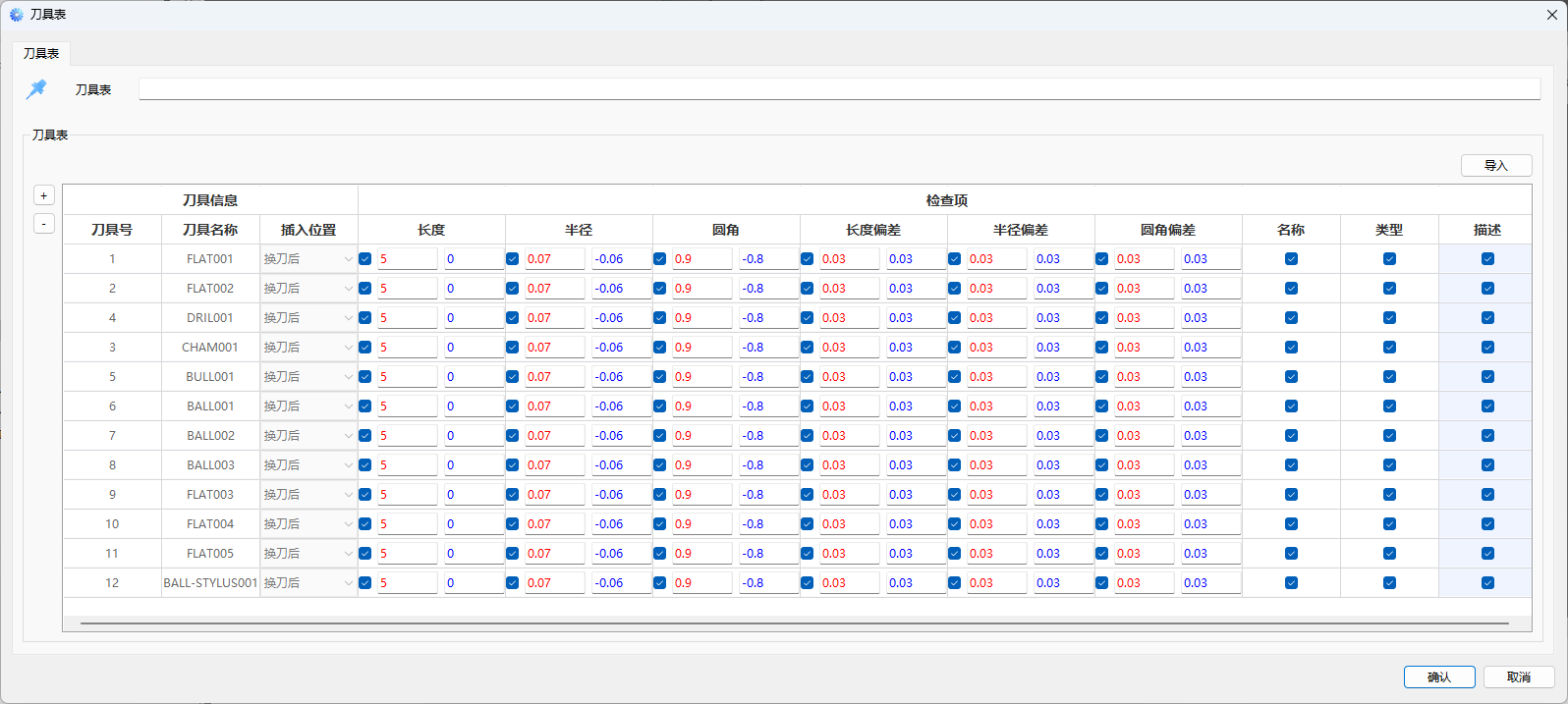 • 精准管控:导入程序所用刀具信息,自主选择需检查刀具并设定参数公差,明确核验标准;