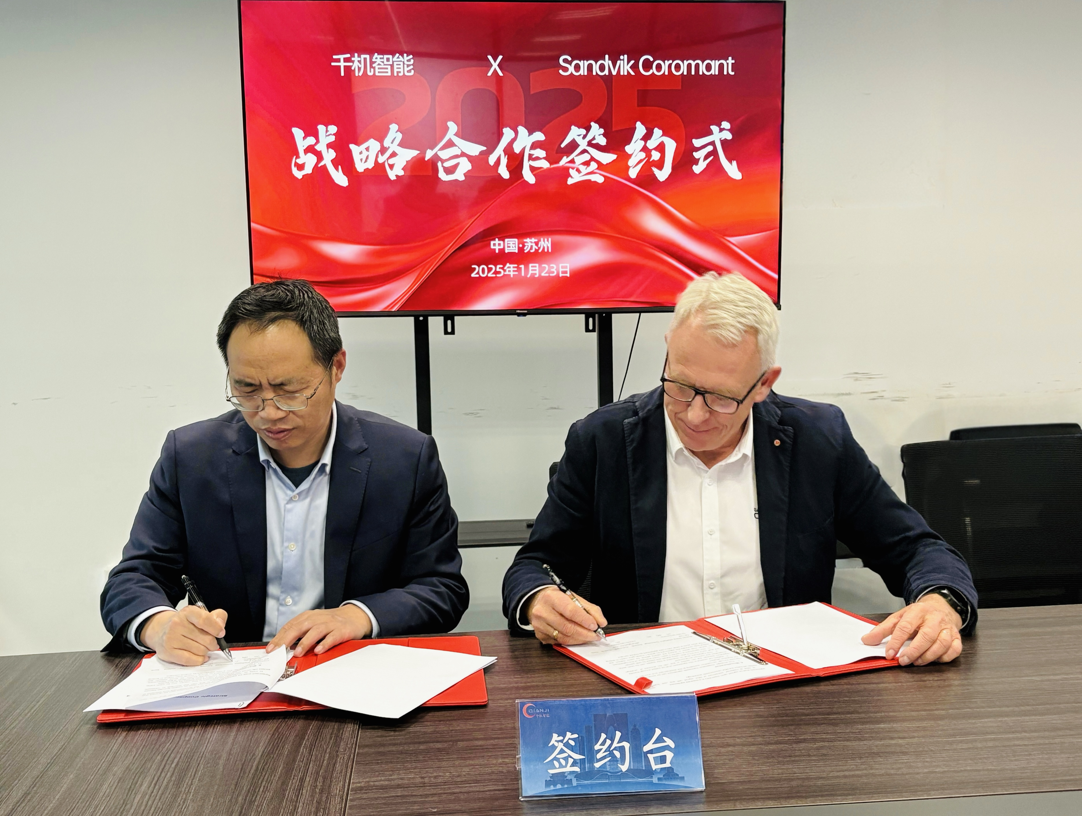 1月,千机智能与山特维克可乐满签署战略合作协议,聚焦技术与市场协同,共同提升工业软件、先进刀具及数控加工交钥匙服务的核心竞争力。