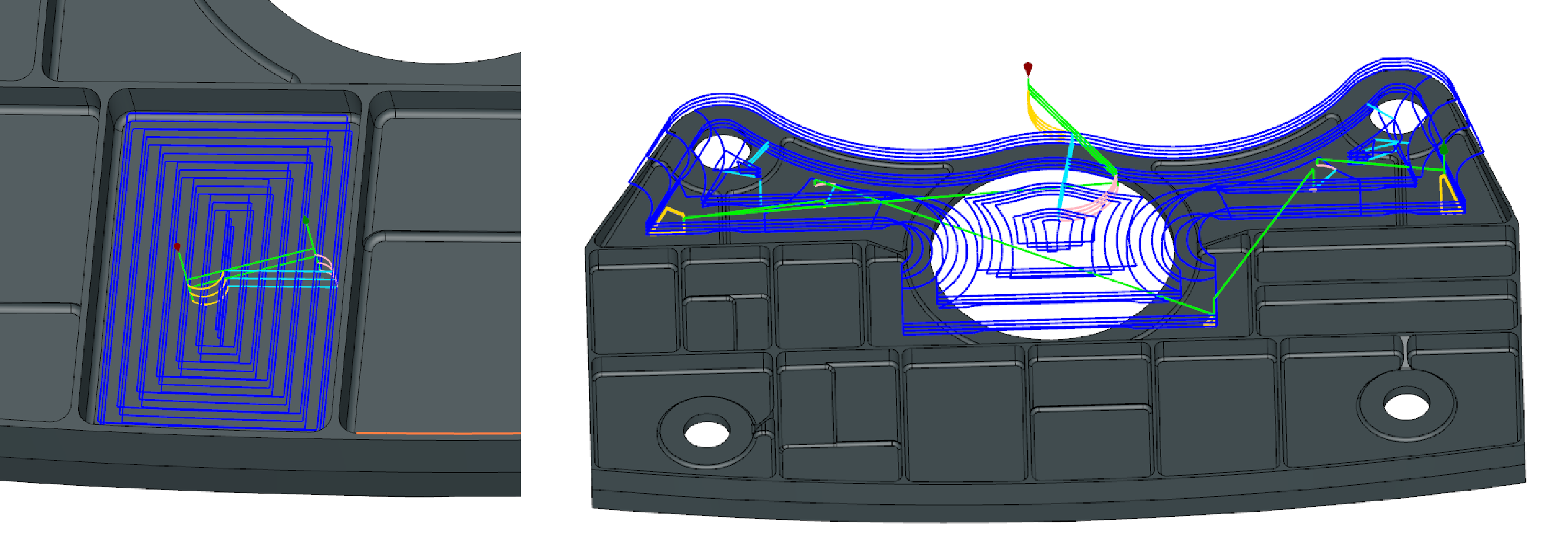 集成多种优化刀路策略,可自动识别平面的内外缘进行刀具避让和刀路延伸。